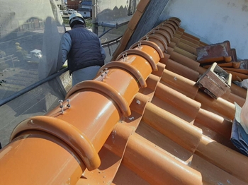 | 日本いぶしの屋根リフォームによる 施工中の様子 |